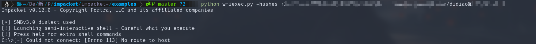 使用wmiexec.py进行命令执行,需要注意的是这里使用的dc03$用户的hash无法使用wmi命令执行