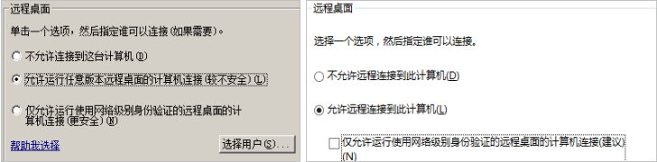 c注册表键值:SecurityLayer、UserAuthentication 组策略选项:远程(RDP)连接要求使用指定的安全层、要求使用网络级别的身份验证对远程连接的用户进行身份验证 计算机属性中的远程设置:允许运行任意版本远程桌面的计算机连接(较不安全)