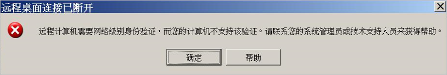远程计算机需要网络级别身份验证,而您的计算机不支持该验证。请联系您的系统管理员或者技术人员来获得帮助。