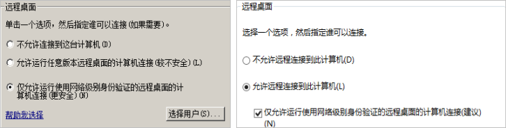 **网络级别身份验证: **NLA,Network Level Authentication是提供给远程桌面连接的一种新安全验证机制,可以在终端桌面连接及登录画面出现前预先完成用户验证程序,由于提前验证部分仅需要使用到较少的网络资源,因此可以有效防范黑客与恶意程序的攻击,同时降低阻断服务攻击(DoS)的机会。