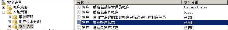 图3-2-16 禁用“帐户: 来宾帐户状态”