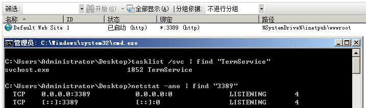 3389远程桌面端口被其它程序所占用(如:IIS),通过以下方法可以看到TermService服务PID和3389端口PID是不一样的,所以在连接时会出现上图报错,但也有可能是其它原因造成的。