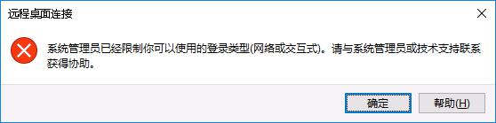 系统管理员已经限制你可以使用的登录类型(网络或交互式)。请与系统管理员或技术支持联系获得协助。(目标主机为Windows10)
