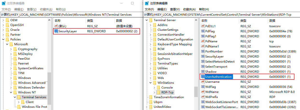 c1、UserAuthentication使用网络级别身份验证(0:关闭、1:开启)