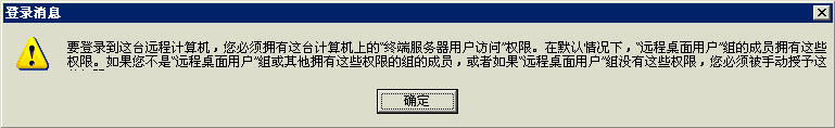 要登录到这台远程计算机,您必须拥有这台计算机上的"终端服务器用户访问"权限。在默认情况下,"远程桌面用户"组的成员拥有这些权限。如果您不是"远程桌面用户"组或其他拥有这些权限的组的成员,或者如果"远程桌面用户"组没有这些权限,您必须被手动授予这些权限。